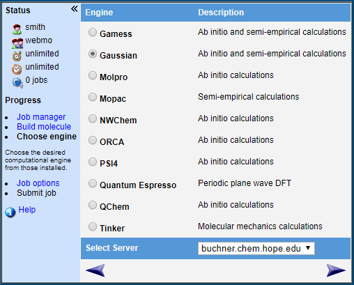 These computational engines can be enabled, disabled, and configured from the web-based WebMO administration interface.