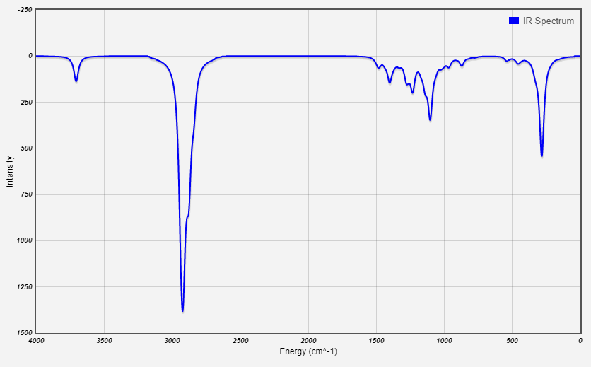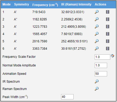 Molecular vibrations are listed in tabular form, and the normal modes can be visualized with arrows or as animations.