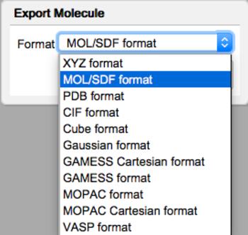The geometry of a molecule can be exported in a variety of formats: