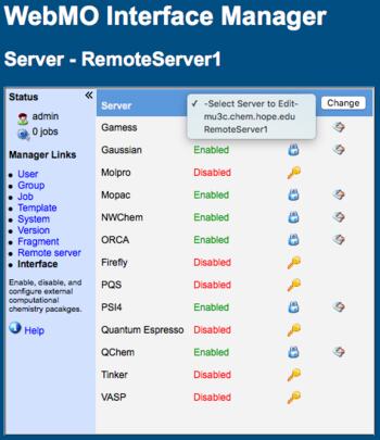 ![]() WebMO Interface Manager for Servers |