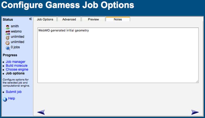 WebMO Pro and Enterprise have built-in job history tracking, which automatically keeps track of multi-step jobs and thereby reduces the need for notes.