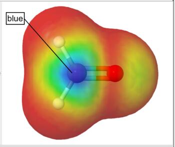 Frontier density surfaces are computed from the magnitudes of the molecular orbitals available for attack by an electrophile, nucleophile, or radical. The result is a "bull's eye" pattern with blue representing the largest probability of attack. For example, the electrophilic (HOMO) frontier density of surface of formaldehyde is blue (maximum value) around the oxygen. the surface indicates that protonation will occur at the oxygen in the molecular plane. The nucleophilic (LUMO) frontier density of surface of formaldehyde is blue (maximum value) around carbon. The surface indicates that nucleophilic attack will occur at the carbon out of the molecular plane.