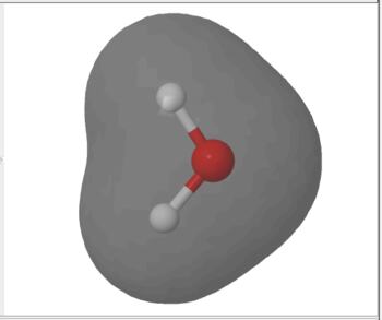 The electron density is computed from the sum of squares of occupied molecular orbitals. The electron density isosurface represents the size and shape of the molecule.