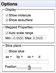 The Options selections are available when a molecular orbital is being displayed. Click the Options category under the Orbitals list. The Options selection allows control over molecular orbital: