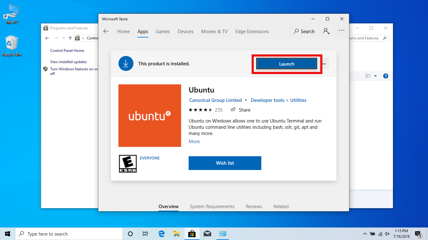 Go to your Control Panel and Enable WSL: